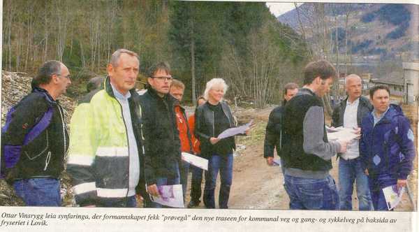 Under formannskapet si synfaring kom det fram at planane om ny kommunal veg som også inkluderer gang- og sykkelveg på utsida av industriområdet, ikkje har framkalla dei store konfliktene. Men der er eitt unntak. Arne Loen som eig hus og hytter nærast byggefeltet, godtek ikkje den skisserte løysinga. Håkon Loen meinte at både verksemda og kommunen på eit tidlegare tidspunkt burde ha gått i dialog med grunneigaren for å unngå det som har blitt ei "ufjelg" sak. Vi har sanneleg prøvd utan at det lukkast, repliserte Ottar Vinsrygg.