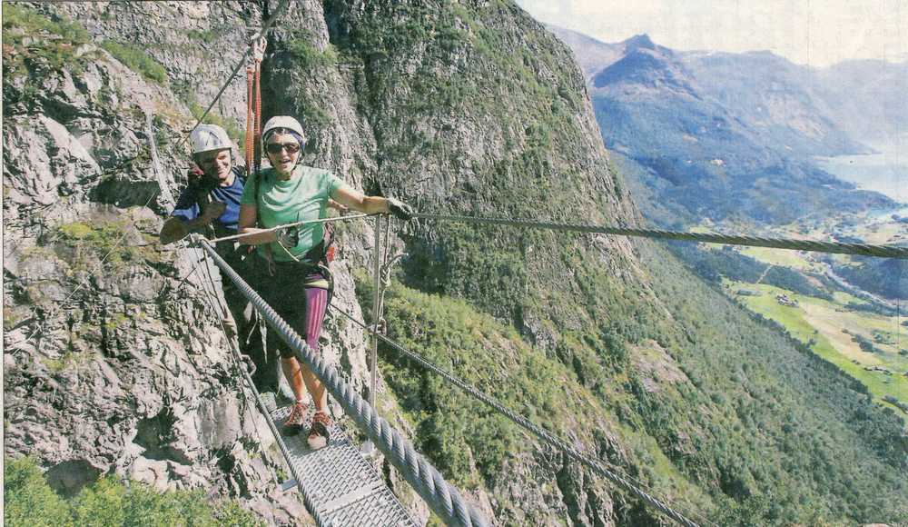 Laurdag vart Gjølmunnebrua i Via Ferrata Loen offisielt opna. Liv Signe Navarsete stod for snorklippinga. Med den nye hengebrua er Via Ferrata Loen no ein av verdas største i sitt slag.