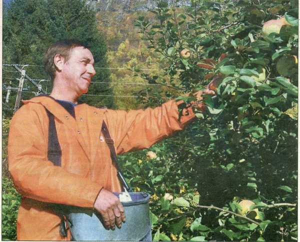 Fruktdyrkar Karl Ove Loen fortel at han i år planta ut nesten 800 nye tre med sortane Discovery og Aroma.