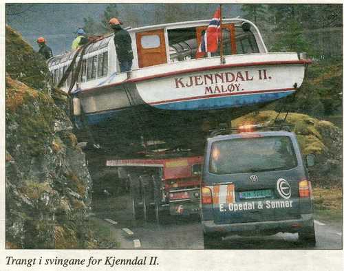 Det var Kjenndalsstova som kjøpte båten med 49 passasjerplassar i 2007, og i sommar vart han erstatta med ein hollandsk kanalbåt med plass til 140 passasjerer. Jan Ove Hogrenning har halde "gamlebåten" godt i hevd, og torsdag kveld var det eit stort apparat i sving for å få båten på ein semitrailer med kurs for Østerdalen.