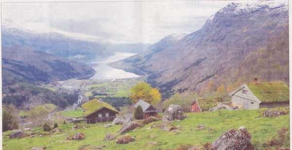"Det vart eg som kom til aa slaa fylgje med honom. Seinare hev han i eit brev bede meg um aa skriva litt om turen me kom til aa taka. Han samla, skreiv han, slike reiseskildringar i ei aarbok fyr "Turistforeningen for Bergen by og stift". Javel, eg skal freista aa skriva ein stubb, men De fær orsaka, godtfolk, eg er ikkje nokot vidare kar med pennen. Kl. 7 om morgonen stod me reiseferduge. Det hadde vore sturtande regn tidlegare om morgonen, og vedret saag ikkje rart ut no helder - til ei ferd upp i ukjende høgfellet. Men bykaren sa han hadde ikkje tid til aa liggja vente paa godvedr, og so ruslade me i veg. Eg hadde berre eit taug og litt mat aa bera. Han hadde ei skreppa med nokot smaatteri i, som han bar."