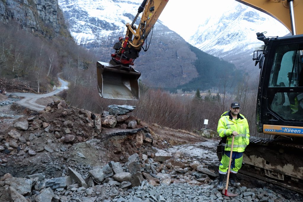 Det er kjekt å kunne gjere slike prosjekt. Dette har pågått frå slutten av november og fram til jul. No er det utvidingar langs vegen i Oldedalen som står for tur, seier Karlsen. Det vert stadfesta av Lars Helge Kveen. Firmaet hans har anbodet og skulle eigentleg utført arbeidet inneverande år.