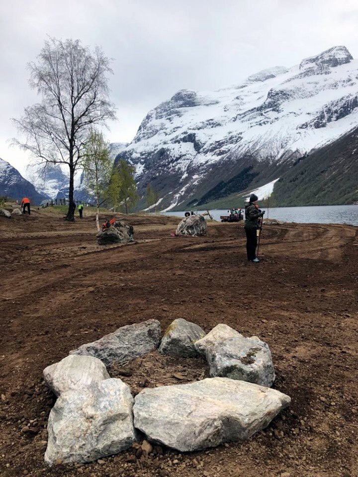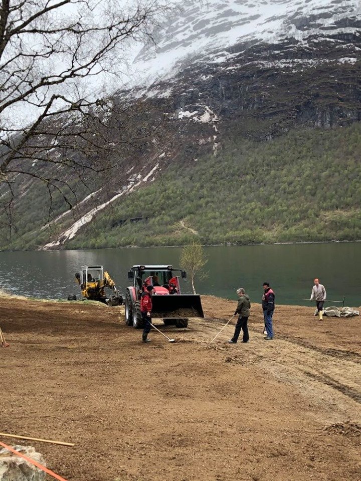 Eg må få takke Geir Egil Roksvåg for gratis overskotsmasse. Stryn Reiselivslag har også bidrege økonomisk, seier Hogrenning. Han håpar at plassen vil bli teke meir vare på no når det har blitt så fint.