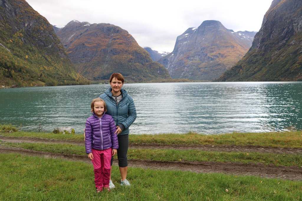 Lodalen. Grete Haugen Vinsrygg saman med dottera kristianna på Hogrenningseina