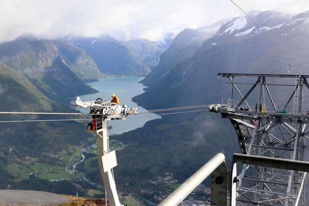 I drift. Reparasjonane på Loen Skylift er avslutta og gondolen er i gang att. Foto. Bengt Flaten