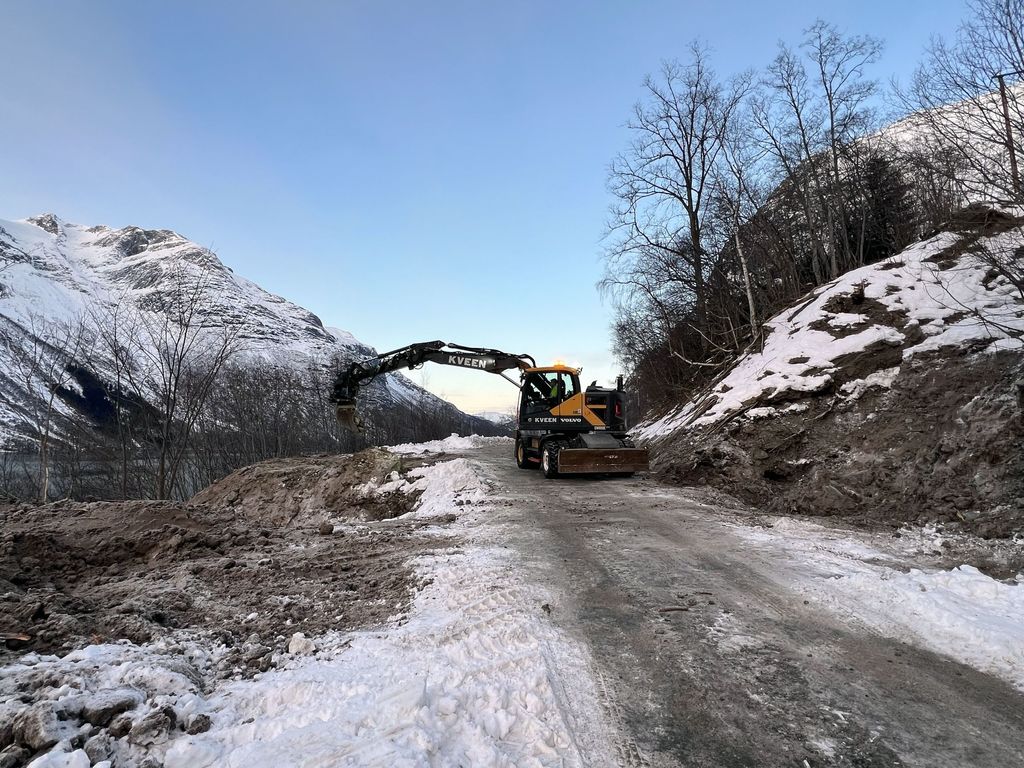 Første veka etter nyttår arbeidde entreprenør Kveen to dagar med å rydde etter skredet som stengte dalen i fire dagar før jul.