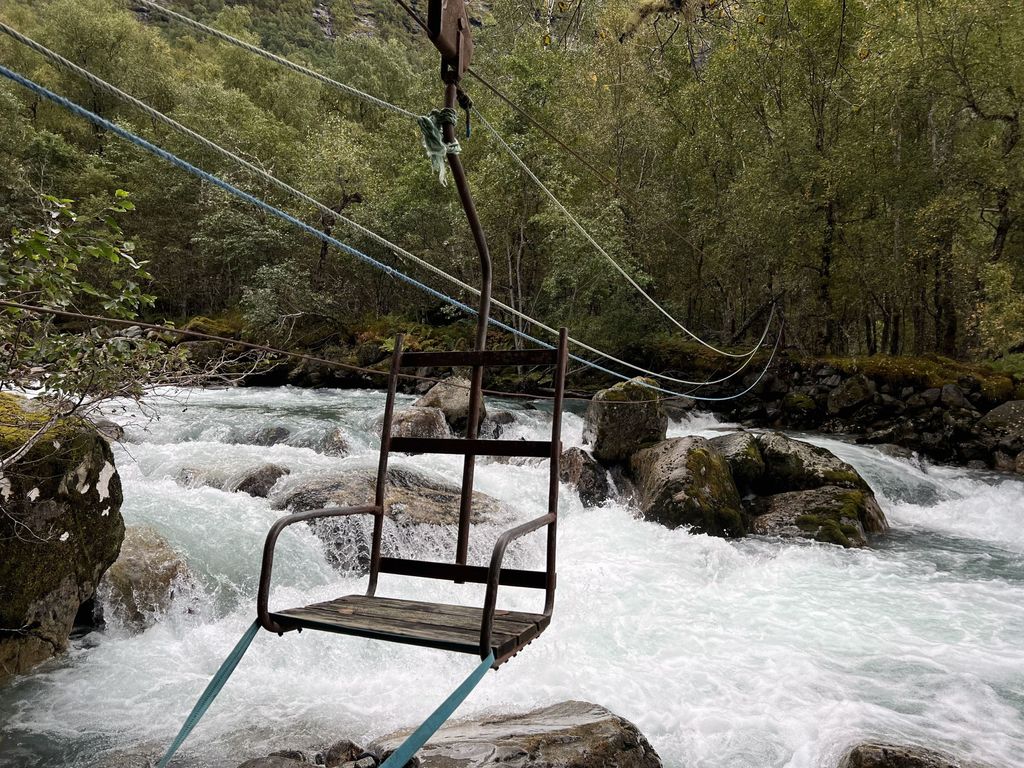 Wiewren og stolen som vart brukt då mannen i 60-åra fall i Bødalselva om omkom laurdag 9. september 2023.