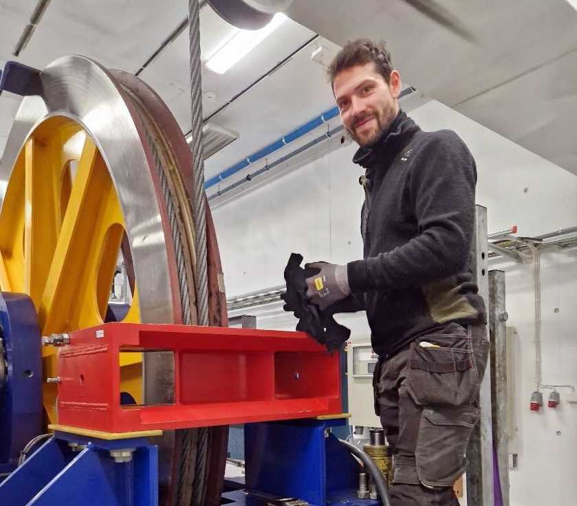 Sidan trekktauet, eller kabelen som trekkjer kabinen opp, strekkjer seg om sommaren grunna temperaturen, så må dette kortast inn. Vi korta inn trekktauet med 1,8 meter, og der spleisen er på 43 meter, seier Skåden.