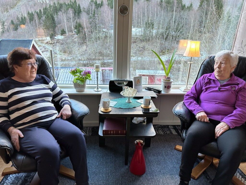 Medan vi sit i stova til Sande kjem naboen frå Hogrenning, Hallfrid Hogrenning, på besøk. Også ho kjenner på redselen for å vere sjuk når vegen er stengt.