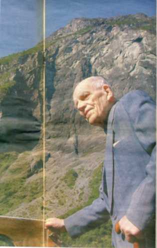 Det er i Firda Ungdomslag jeg har gitt mest og fått mest. skyter Leif Arnold Loen inn, etter å ha deklamert et par av sine kjære dikt. Han sier ellers at han ikke skriver sa mye lenger, har ikke samme gløden som før, selv om han nå har tid nok. Alt skal være sa moderne i våre dager. Det gjelder også diktningen. Men neimen om jeg kryper på føtten for å lage det forlagene vil ha. Jeg får ikke den samme impulsen til å skrive som tidligere. Og her i bygda er det snart bare turisme igjen, og der får jeg iallfall ingen inspirasjon. Her er så mange tungemål at det er rene Babels forvirring, sier han og smiler skjevt.