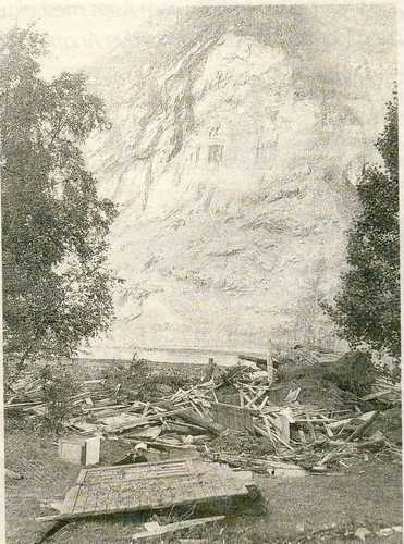 Et følge på 13 stykker var engang paa toppen. Nedskriveren av dette var ogsaa med. Paa tilbaketuren skreie vi nedover en brat haard snøbre, og det gik med en viss fart. Det gik endaa saa fort at en ung amerikaner og to bergensdamer ikke kunde stanse sig, men gik me voldsom fart like i en stenur som vi lenger oppe ikke hadde set, da den laa unde bakken. Følgen blev at amerikaneren brakk sit ene ben paa 8 steder, damene slap fra det md det par skrmmer. Men det var overhodet et held at de kom fra det med livet. Amerikaneren blev baaret hjem av 4 mand paa en baare som blev hentet op. Og først etfter 8 ukers forløp kunde han forlate hotellet og reise hjem.