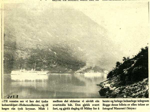 En gang kom der op en tysker, en av de digreste; han veiet adsksillig over 100 kilo og maatte ha to førere med. Disse halet ham opefter et taug som han hadde rundt livet. Førerne gik i hver sin ende av tauget og drog, og tyskeren la sig makelig tilbake i tauget og sattebare den ene foten foran den andren. Nedover gikk tyskeren foran og førerne etter og holdt stramt i taugene.
