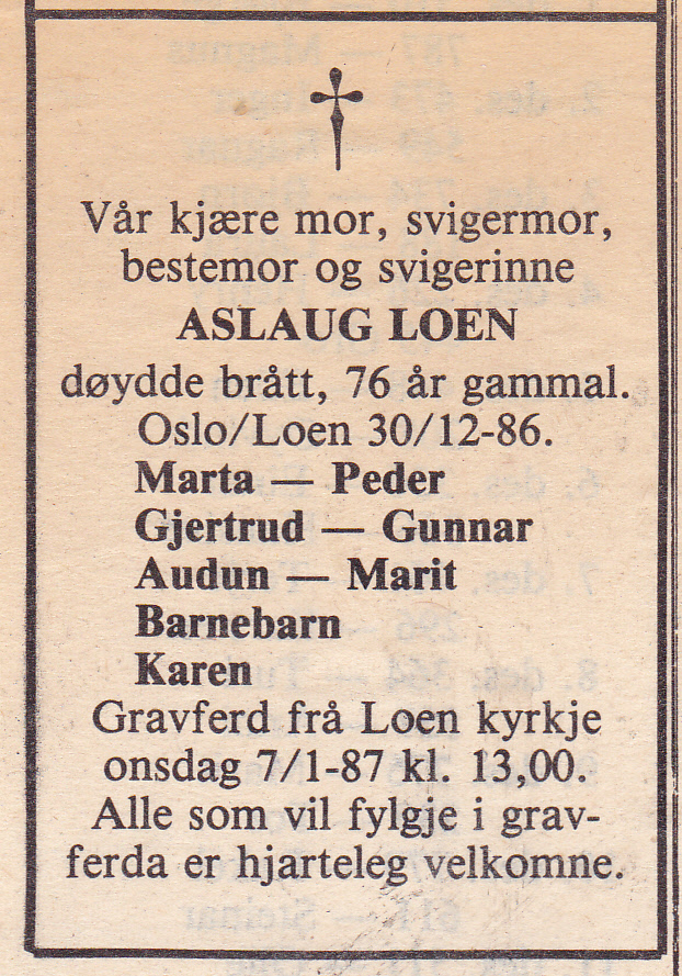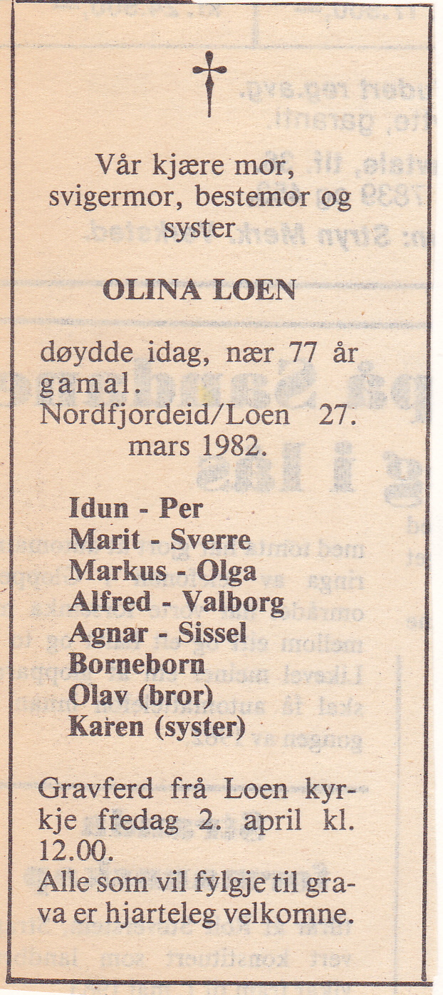 Dette dokumentet inneheld gamle dødsannonser som tidlgare har blitt klipt ut og lagra på papir. Annonene ligg her i den rekkefølgje dei er registrert og ikkje etter dødsdato. Innholdsfortegnelsen i menyen er derimot sortert på dødsdato. Bilde av annonsene vert vist i dette feltet etter val i menyen.