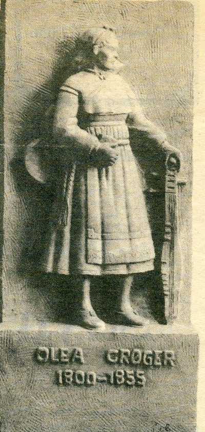 Anne Grimdalen har laga eit minnesmerke over henne som er reist i Heddal. Under monumentet av henne i heil figur står: Olea Crøger. 1800-1855.