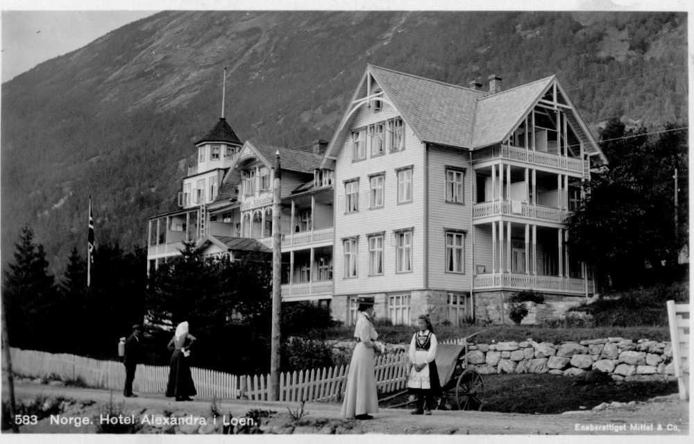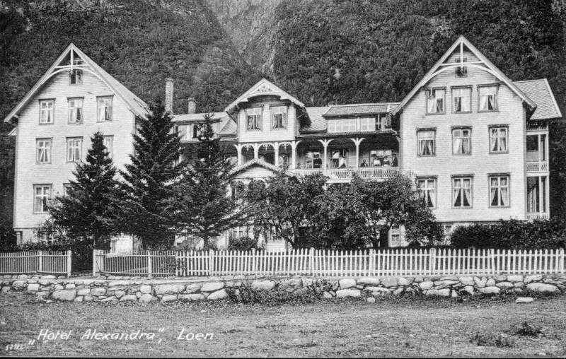 Då hotellet hadde vore i drift i 4 år (1888?) vart namnet på hotellet endra frå Loen's Hotel til Alexandra oppkalla etter prinsessa av Wales, seinare dronning Alexandra som kom frå Danmark (Dette står på side 29 i boka, men stemmer ikkje med bilde side 27 som skal være frå ca 1885 og der det står "Hotel Alexandra" på veggen).