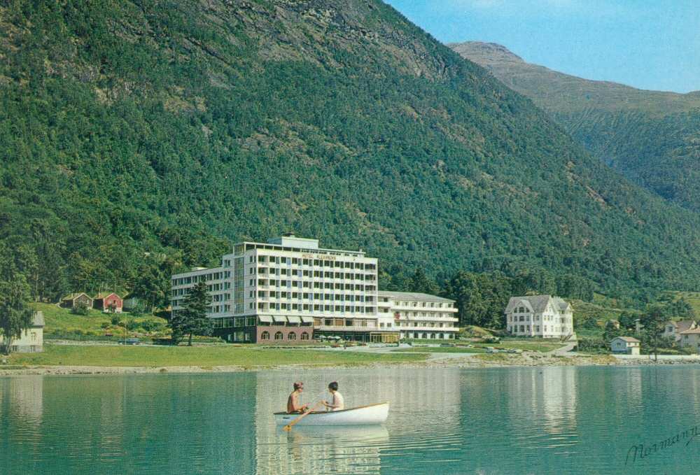 Postkortsom viser hotellet etter fullføring av utbygginga i 1968-1970.