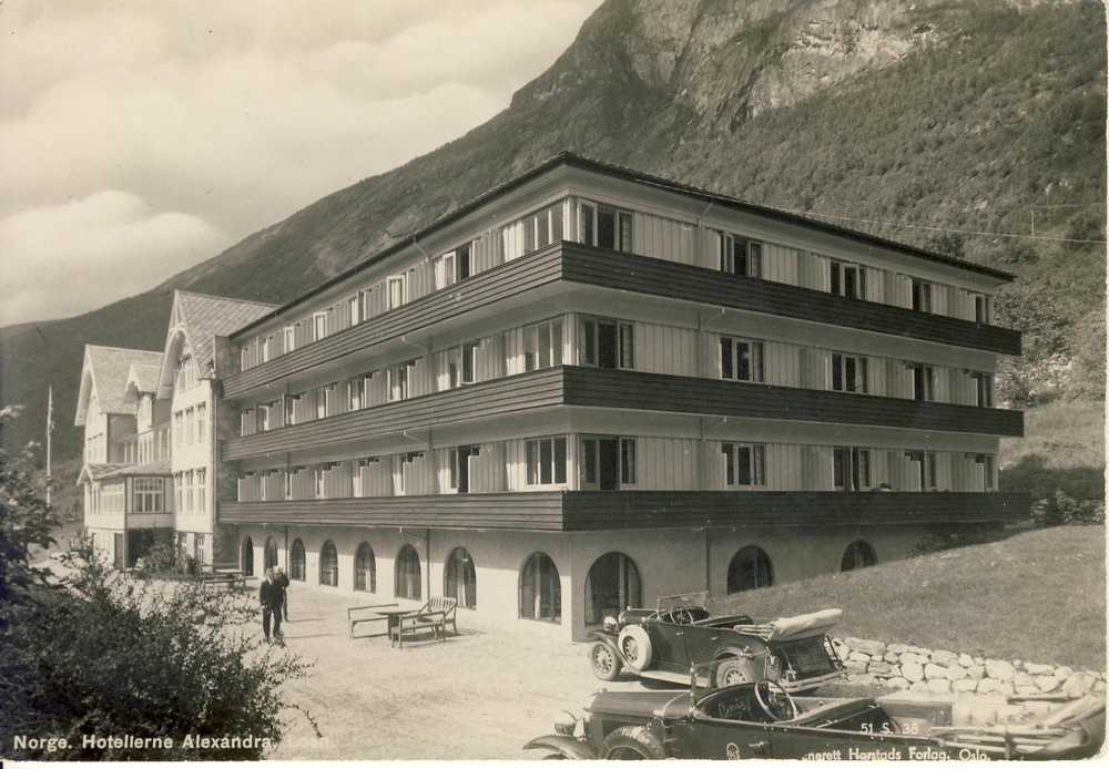 Postkort som viser hotel Alexandra etter ombygginga i 1913 (Postkort stempla 3.8.1923)