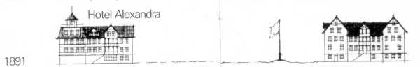 I 1891 vart hotellet utvida med ny matsal, og det vart bygt tårn over den nye matsalen. Illustrasjonen viser at også Kvamme's Hotel var utvida, men eg har ikkje sett noko om dette i boka om hotell Alexandra.