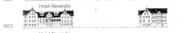 Skisse som viser fasaden av hotell Alexandra i 1913