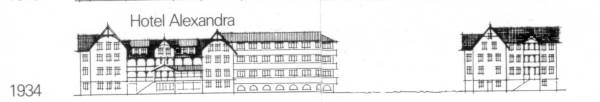 Skisse som viser fasaden av hotell Alexandra i 1983