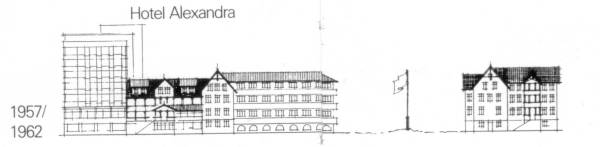 Skisse som viser fasaden av hotell Alexandra i 1957/62