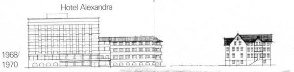 Skisse som viser fasaden av hotell Alexandra i 1968/70