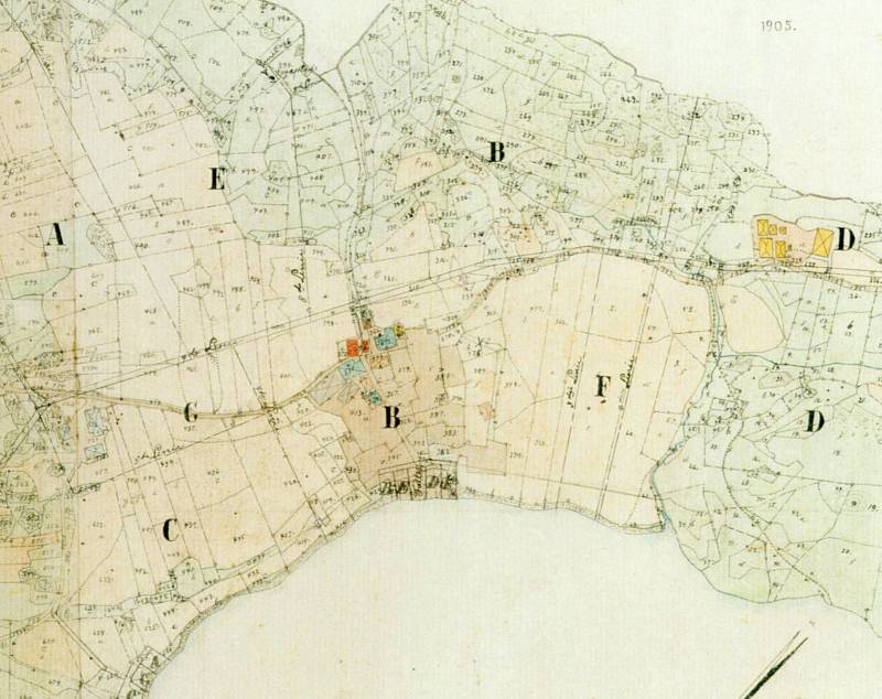 Diverse bildemateriale samanlikna med kartet frå 1877 tyder på at bruk nr 79/1 hadde fått ny låvebygning etter 1877, men før 1905. Den nye låvebygningen var snudd 90 grader høve til den gamle, og låg såleis med lengderetninga søraust - nordvest. Den nye låvebygningen låg elles på samestaden som den gamle, bakanfor låvebygningen til bruk nr 79/3 sett frå vatnet.