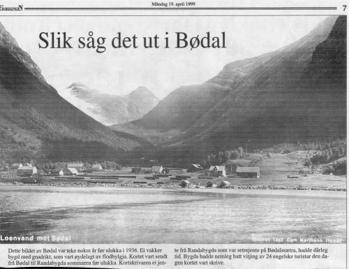 Ved raset i 1936 kom bølgja mykje støre enn i 1905. Medan bølgja i 1905 delte seg mot Nesodden, skola ho no over Nesodden og alle bruka i Bødal vart tekne. Det einaste som stod igjen var ysteriet, og nokre gardfjøsar lengst oppe.