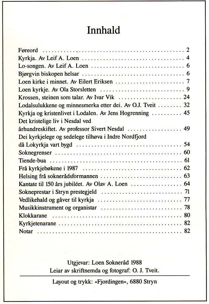Jubileumsskrift utgjeve av Loen sokneråd 1988