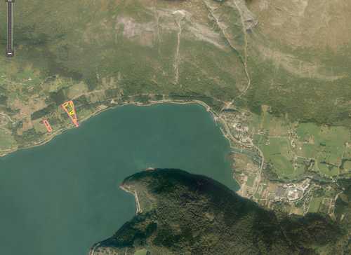 Det gamle tuent ligg relativt langt opp i hovedteigen. Det er også eit nyare bustadhus lenger nede i teigen.
