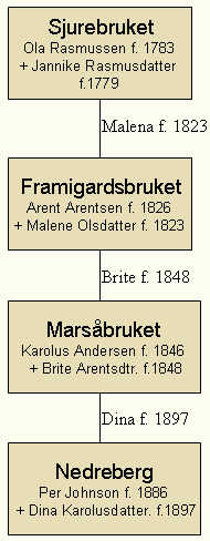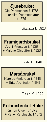Med giftarmålet mellom Karolus Anderson Marså (1846 - 1926) og Brite kom Framigardsslekta på Rake og dermed Sjureslekta i Loen inn i Marsåslekta.