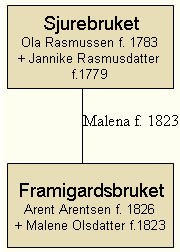 Malene Olsdotter Loen (1823 - 1890) var fødd på Sjurebruket i Loen. Med giftarmålet mellom Malene og Arent Arentson Rake (1826 - 1898) vart det slektsamband mellom Framigardsslekta på Rake og Sjureslekta i Loen. Det vart gjort søskenbyte slik som det ofte var i den tida. Malene vart gift med Arent Framigard og søstera hans, Olina, vart gift med Sjur-Anders.
