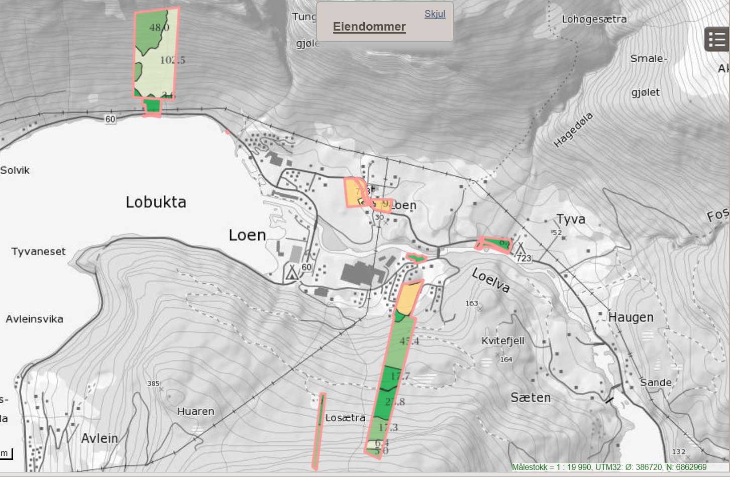 Gardskartet nedanfor viser Sjurebruket slik det er i 2016.